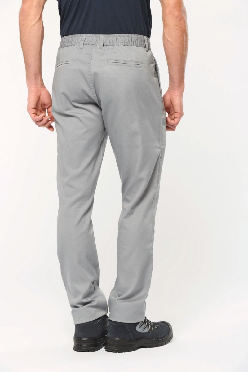 | Omschrijving | 65% polyester / 35% katoen. Wasbaar op 60 °C. 2 Italiaanse zijzakken waarvan 1 muntzak. 2 omzoomde achterzakken met versterkte naden. Gulp met rits- en knoopsluiting. Elastische tailleband voor meer comfort. Met lussen. Ophanglus aan de binnenkant op de taille achteraan. Ideaal voor dagelijks gebruik. Gecertificeerd STANDARD 100 by OEKO-TEX®N° CQ 1007/8, IFTH. |