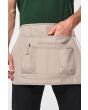 | Omschrijving | 100% polyester. Gemaakt van 100% gerecycleerd polyester. Gecoate en waterdichte 8000 mm Oxford-stof. 2 niveaus met zakken: 1 grote zak in het midden + 4 zakken, waarvan 1 met dubbele vakken en 1 met lijst en klittenbandsluiting. Ton-sur-ton biesje als afwerking. Lint en gesp van gerecycleerd plastic om de maat van de schort aan te passen. Totale hoogte van de schort = 35 cm. Breedte van de onderkant van de schort = 54 cm. Afneembaar etiket. |