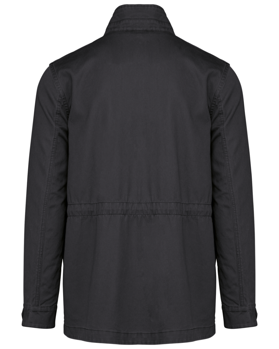 | Omschrijving | 100% katoen. Twillconstructie. Rechte snit. Gewassen kledingstuk. Deze techniek maakt dat er kleurverschillen kunnen zijn tussen de producten en elk stuk dus uniek is. Ritssluiting met een metalen schuiver en trekker in de hoofdstof, en een knooplijst met onzichtbare drukknopen in het midden vooraan. Binnenin afgewerkt met een oplegsel. Vier buitenzakken met een drukknoop. Pols met een sierlijst, samengehouden met een drukknoop. Verstelbare aanrijgkoordjes in de tailleband, met stopper met lederlook in het kledingstuk. Schouderlijst met knoop. Binnenzak met klittenband. Halve maan voor eenvoudige personalisatie en ophanglus binnenin. |