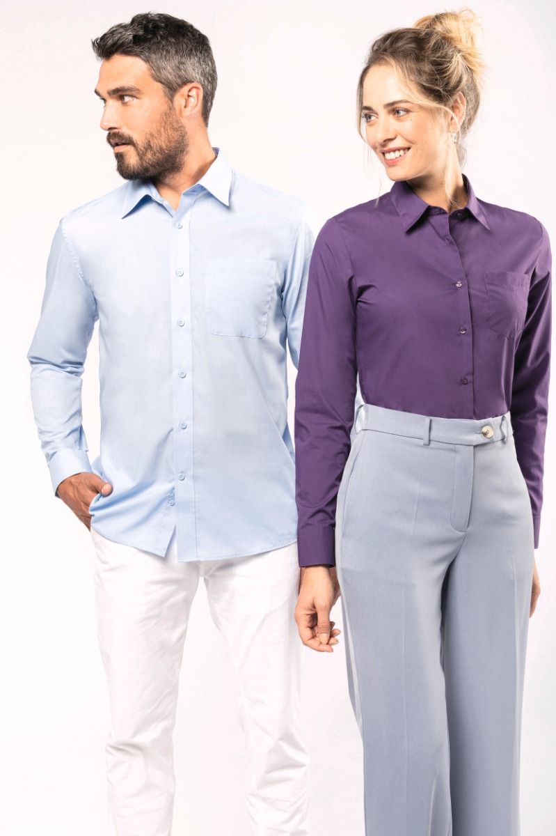 | Omschrijving | 65% polyester / 35% katoen. Gemakkelijk in onderhoud (Easy Care). Verstevigde kraag met baleinen. Toon op toon knopen. Borstzak links met afgeronde hoeken. Dubbel inzetstuk op de rug. Afgewerkt met dubbele vouwnaden. Verstelbare mouwen en mouwuiteinden met afgeronde hoeken en knoop. 2 extra knopen. |
