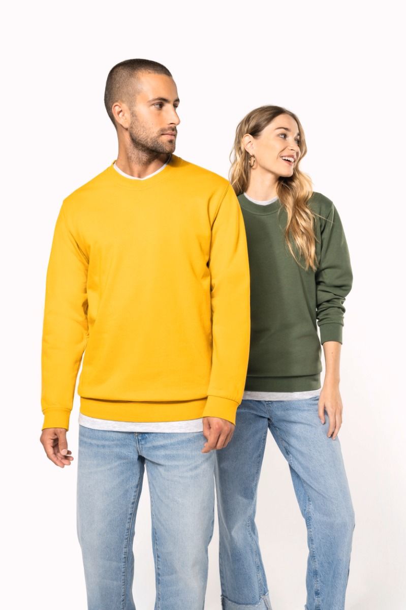 | Omschrijving | 80% katoen / 20% polyester. Geborsteld fleece aan de binnenkant. Ingezette mouwen. Ribboord aan halsopening, mouwuiteinden en aan de onderkant. |